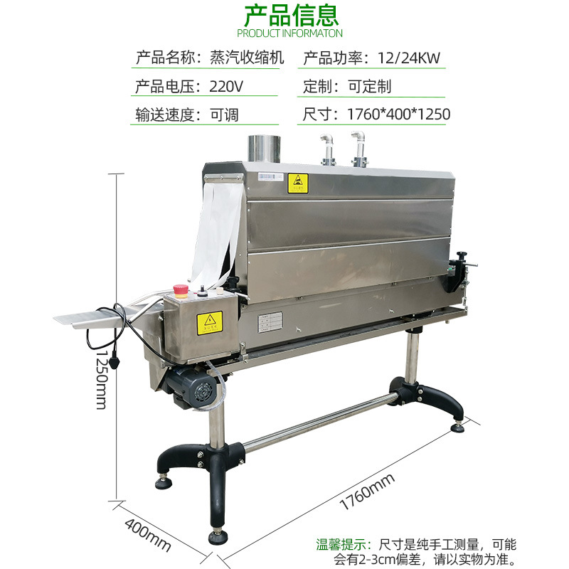 - 環(huán)保性能較好:相對(duì)于一些使用化學(xué)溶劑的包裝方式,蒸汽收縮機(jī)主要利用蒸汽作為熱源,減少了對(duì)環(huán)境有害的化學(xué)物質(zhì)的使用。
