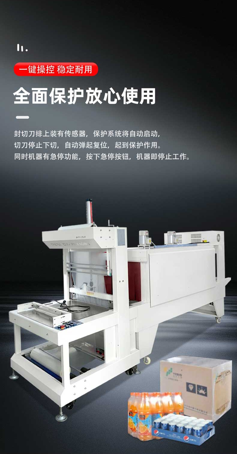 批量生產(chǎn)對(duì)設(shè)備的連續(xù)運(yùn)行能力要求極高,袖口式熱收縮包裝機(jī)通過(guò)三大設(shè)計(jì)確保穩(wěn)定性:其一,采用重型鋼結(jié)構(gòu)機(jī)身,搭配精密軸承與耐磨輸送帶,長(zhǎng)期運(yùn)行后機(jī)身無(wú)明顯晃動(dòng),輸送帶磨損率降低 60%,使用壽命可達(dá) 3-5 年;其二,搭載進(jìn)口 PLC 控制系統(tǒng)與伺服電機(jī),核心部件故障率低于 0.3%,可支持 24 小時(shí)連續(xù)作業(yè),即使在食品飲料行業(yè) “旺季日產(chǎn) 10 萬(wàn)瓶” 的高強(qiáng)度生產(chǎn)場(chǎng)景下,也能保持穩(wěn)定運(yùn)行;其三,配備完善的保護(hù)機(jī)制 —— 當(dāng)加熱管溫度異常、包裝膜斷膜、輸送帶卡瓶時(shí),設(shè)備會(huì)自動(dòng)切斷電源或暫停運(yùn)行,并在觸控屏上顯示故障原因,操作人員可快速排查維修,平均停機(jī)維修時(shí)間控制在 15 分鐘以內(nèi),大幅減少因設(shè)備故障導(dǎo)致的產(chǎn)能損失。