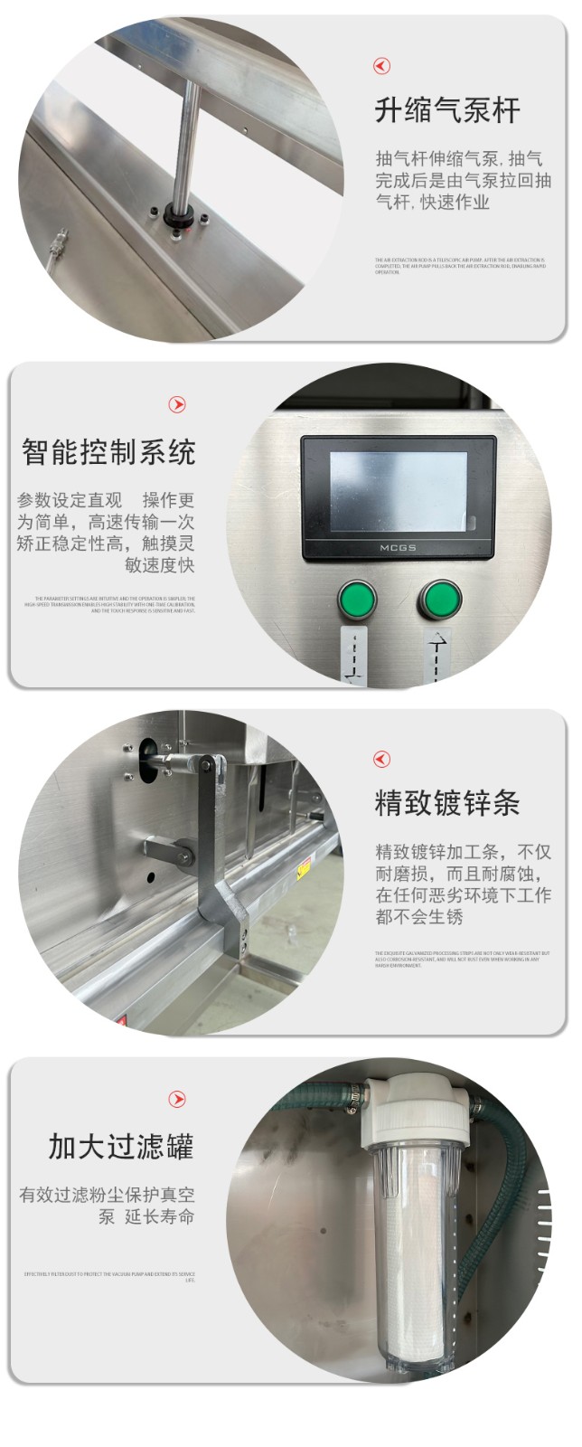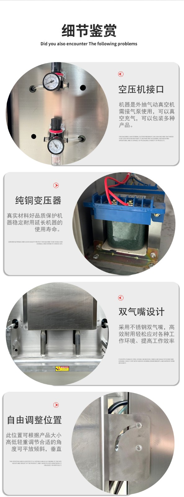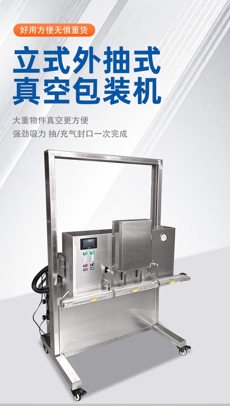硬件適配保障:這類設(shè)備的外殼和真空室多采用不銹鋼材質(zhì),抗腐蝕、不易生銹,即便接觸醬料、海鮮等帶水分的物料,也能穩(wěn)定運行,且清潔方便,可避免潮濕環(huán)境對機器的損壞。部分機型還針對液態(tài)物料優(yōu)化了密封結(jié)構(gòu),防止包裝時液體滲漏影響設(shè)備部件。