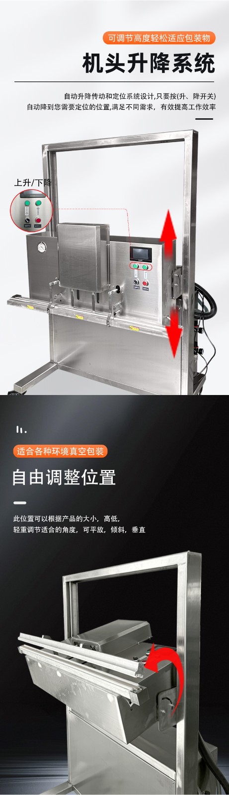 升降結(jié)構(gòu)適配不同高度:工作臺或封口部件可靈活升降,例如 鼎業(yè)1200型號的立式真空包裝機,封口離地高度可調(diào)節(jié);立式升降系列機型頭部可垂直無論是小袋零食,還是 50kg 的大袋大米、塑膠料,都能找到適配的包裝高度。