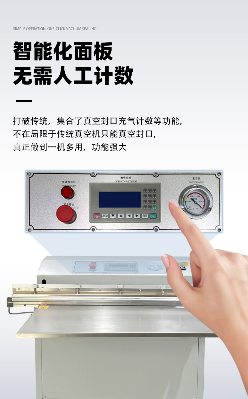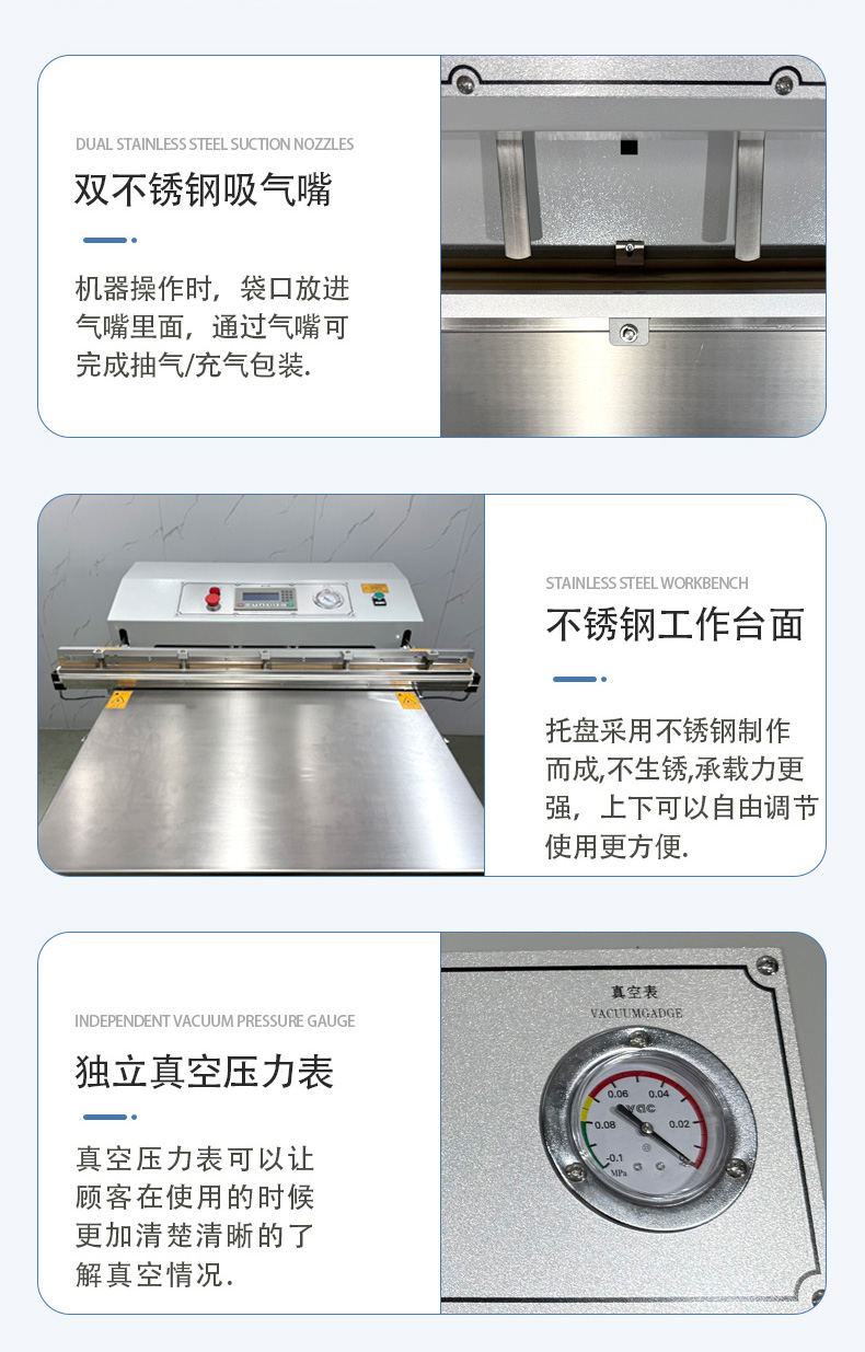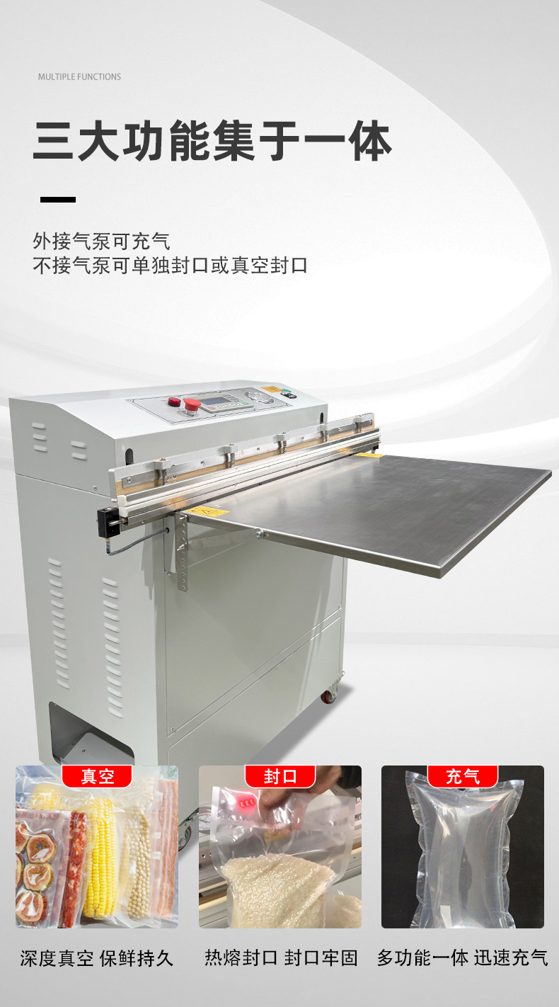 - 外抽真空包裝機的熱封條通常位于抽氣嘴下方或封口機構(gòu)處,外部有金屬防護蓋(防止誤觸高溫)。