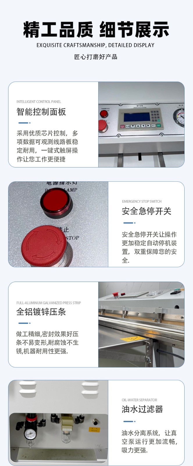 - 放入空白包裝袋,進行真空封口測試,檢查封口是否平整、無漏封、無焦糊(若封口不牢,可適當調(diào)整溫度;若焦糊,需降低溫度或時間)。