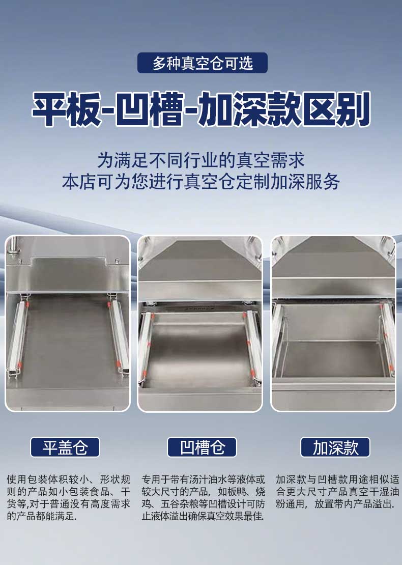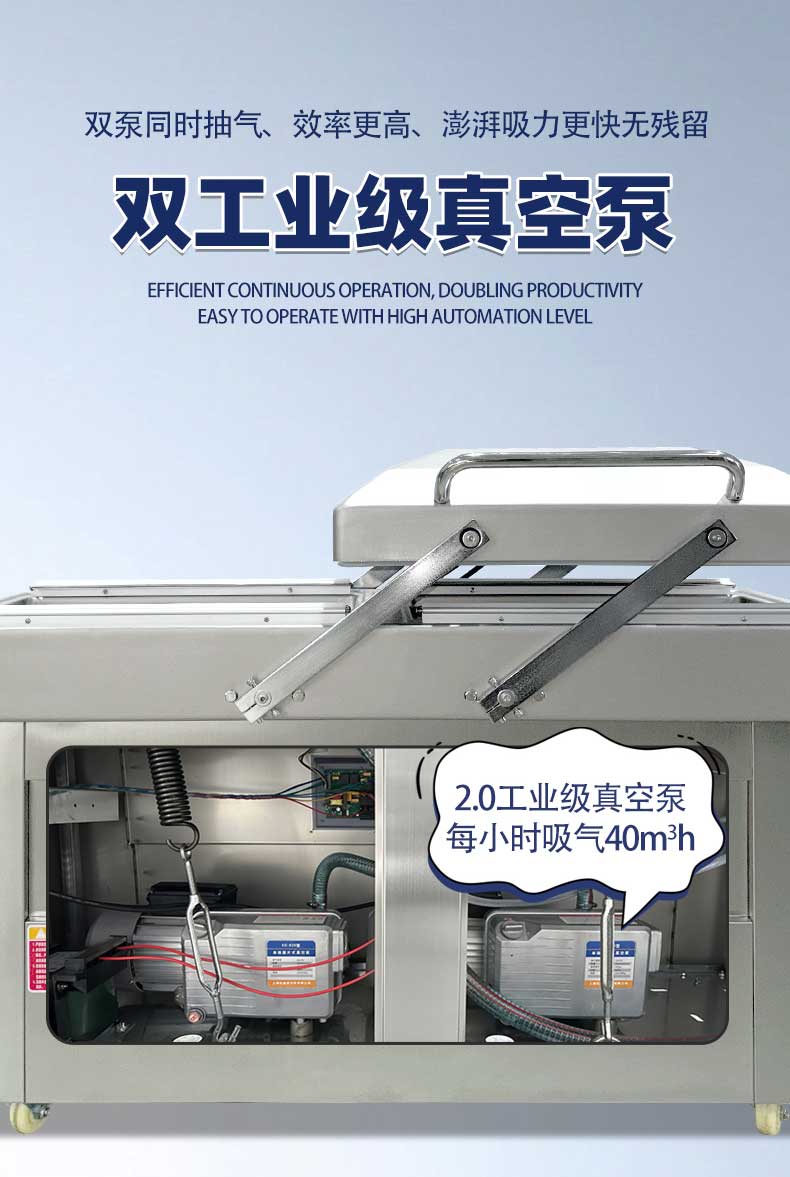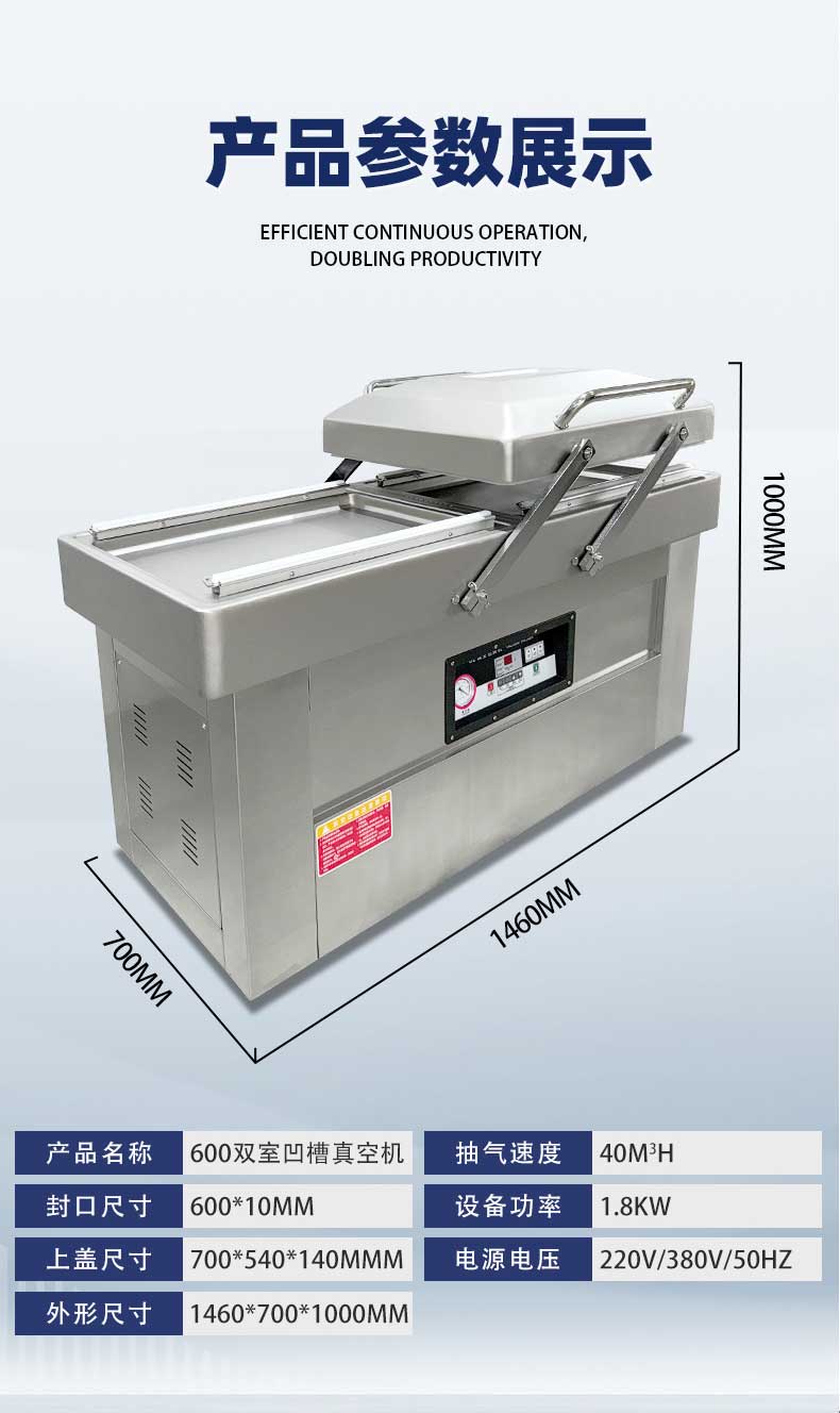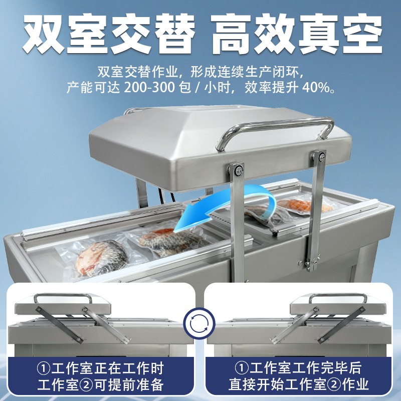 - 高效包裝:兩個(gè)真空室可交替工作,當(dāng)一個(gè)真空室進(jìn)行抽真空和封口操作時(shí),另一個(gè)真空室可進(jìn)行下一批產(chǎn)品的擺放等準(zhǔn)備工作,大大提高了包裝效率,減少了整體運(yùn)作時(shí)間3。