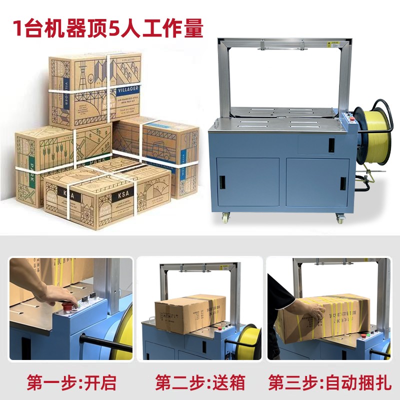 - 半自動打包機(jī):效率相對較低,因為人工放置打包帶的過程會占用一定時間,且在連續(xù)打包時,人工操作的速度有限,更適合于打包量較小、對打包速度要求不高的場合,如小型企業(yè)、商鋪或家庭使用。