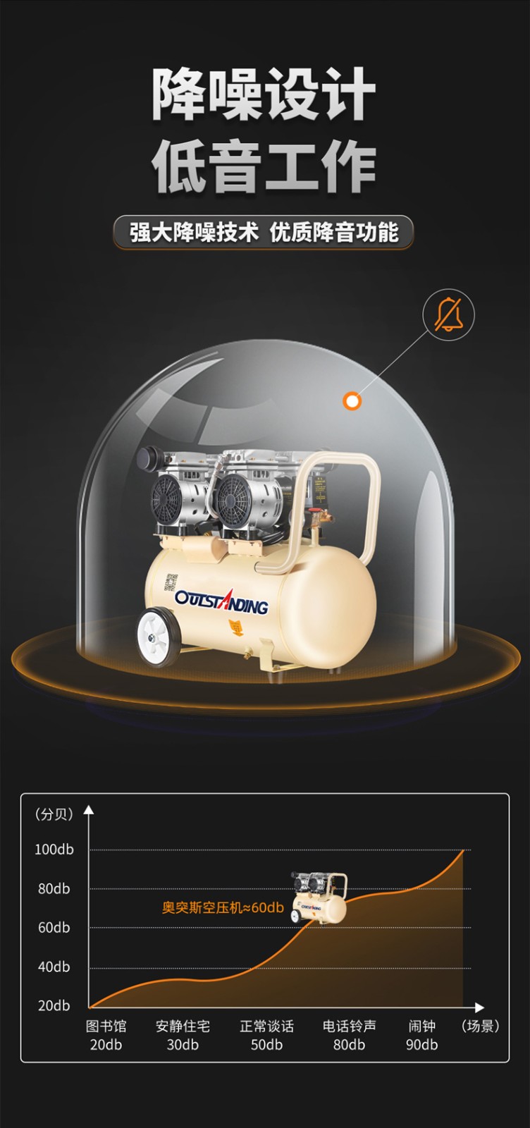 全新充氣泵靜音無油空氣壓縮機高壓打氣泵工業(yè)級空氣大功率充氣