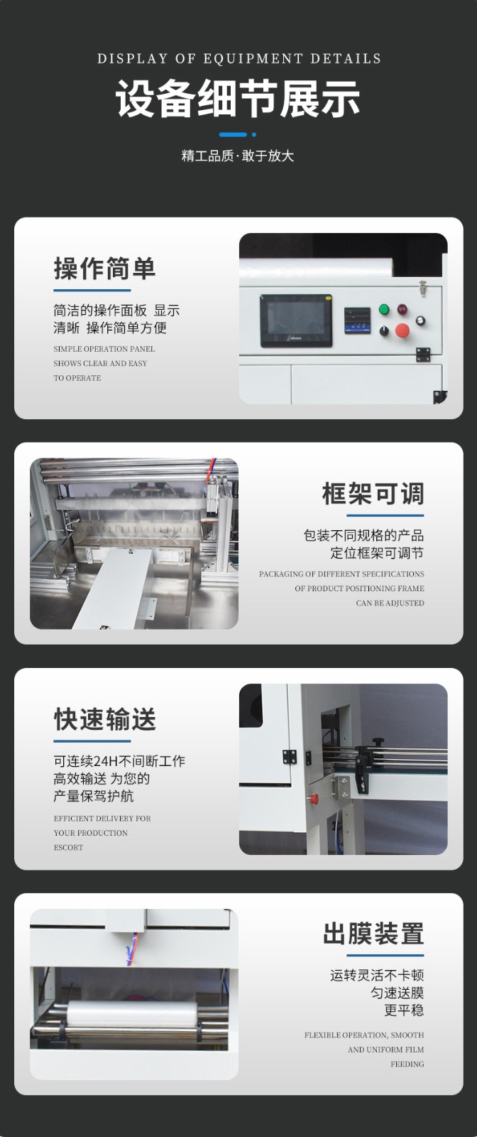 - 機(jī)械結(jié)構(gòu)堅(jiān)固:設(shè)備的機(jī)械部件采用高質(zhì)量的材料和精密的加工工藝,結(jié)構(gòu)設(shè)計(jì)合理,能夠承受長(zhǎng)時(shí)間的工作壓力。例如,其框架結(jié)構(gòu)穩(wěn)固,能夠減少設(shè)備在運(yùn)行過程中的振動(dòng)和晃動(dòng),保證套膜動(dòng)作的準(zhǔn)確性。