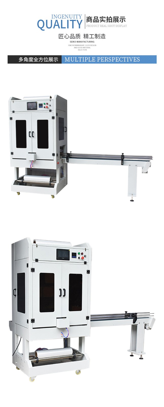 - 高速套膜:具有較高的套膜速度,每分鐘可以完成多件產(chǎn)品的套膜,極大地提高了包裝作業(yè)的速度。相比傳統(tǒng)的手工套膜或半自動(dòng)套膜設(shè)備,其效率提升顯著,能夠滿足大規(guī)模生產(chǎn)的需求。