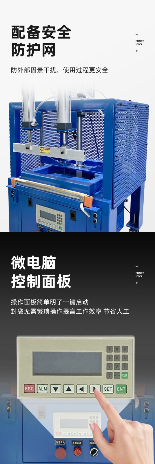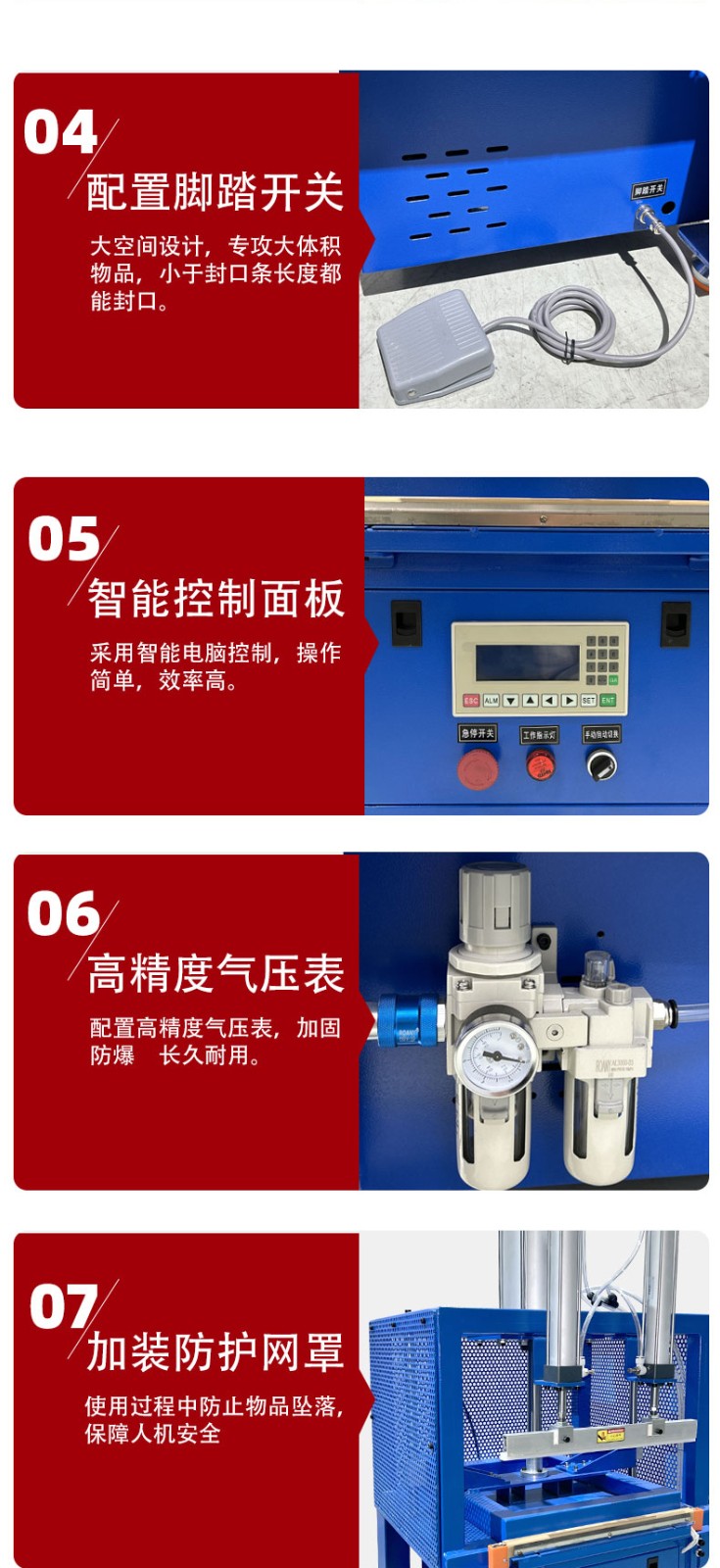 - 控制系統(tǒng):一般采用微處理器或 PLC 控制,操作人員可以通過(guò)控制面板設(shè)置壓縮時(shí)間、壓力、封口溫度、封口時(shí)間等參數(shù)。控制系統(tǒng)還能對(duì)設(shè)備的運(yùn)行狀態(tài)進(jìn)行監(jiān)測(cè)和反饋,出現(xiàn)故障時(shí)會(huì)發(fā)出報(bào)警信號(hào),便于及時(shí)排查和修復(fù)。