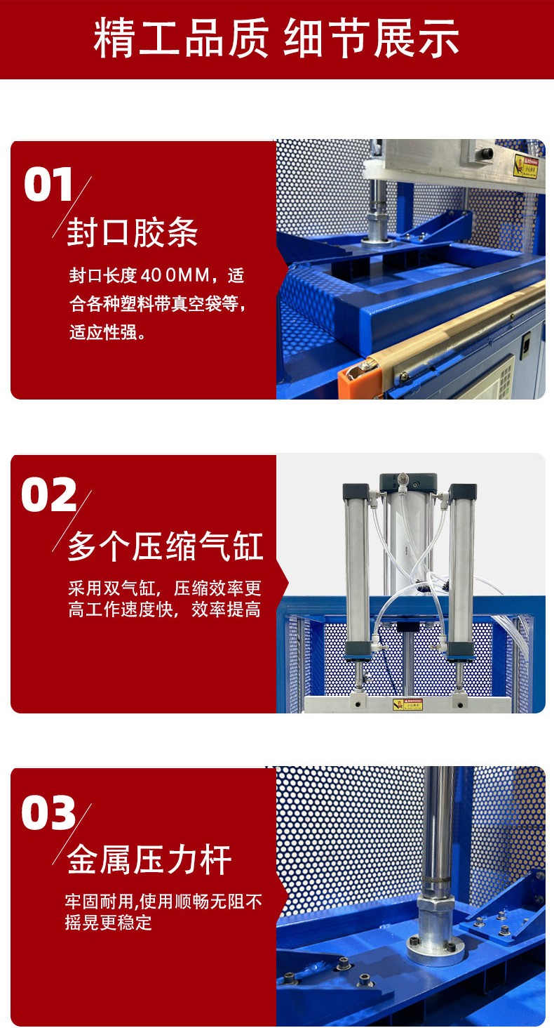 - 包裝效率高:能夠快速完成壓縮和封口操作,每分鐘可進(jìn)行多次包裝,適用于批量生產(chǎn)。