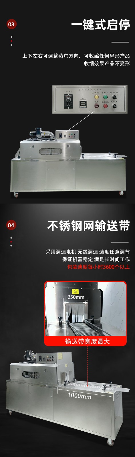 蒸汽收縮一體機的優(yōu)勢源于其對 “蒸汽加熱” 特性的充分利用,以及人性化的結(jié)構(gòu)設(shè)計,具體特點如下: