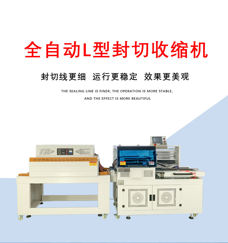 - 封切原理:全自動(dòng) L 型封切收縮機(jī)的封切部分主要是通過加熱封刀來實(shí)現(xiàn)。當(dāng)產(chǎn)品通過輸送帶被送至封切區(qū)域時(shí),包裝薄膜會(huì)從薄膜卷筒被引出并覆蓋產(chǎn)品。封刀在加熱到一定溫度后,在壓力作用下將薄膜的兩側(cè)和底部邊緣進(jìn)行密封,形成一個(gè) L 型的封口。這個(gè)過程中,封刀的溫度和壓力是根據(jù)薄膜的材質(zhì)和厚度來精確控制的,以確保封口牢固且平整。例如,對(duì)于 POF 薄膜,封切溫度一般在 160 - 200℃之間,而 PVC 薄膜則可能需要 180 - 220℃的溫度。