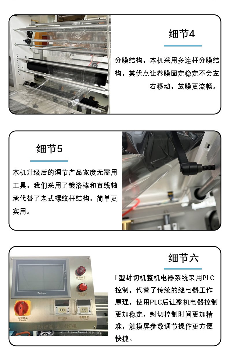 - 封刀組件:包括封刀和加熱元件。封刀一般是由特殊合金材料制成,具有良好的導(dǎo)熱性和耐磨性。加熱元件通常是電阻絲或陶瓷加熱片,它們被安裝在封刀內(nèi)部或附近,能夠快速將封刀加熱到工作溫度。封刀的形狀呈 L 型,以實(shí)現(xiàn)產(chǎn)品底部和一側(cè)的封口,其邊緣部分是密封薄膜的關(guān)鍵部位,要求精度較高,以確保封口的質(zhì)量。